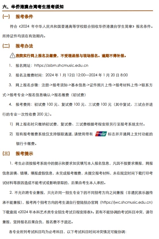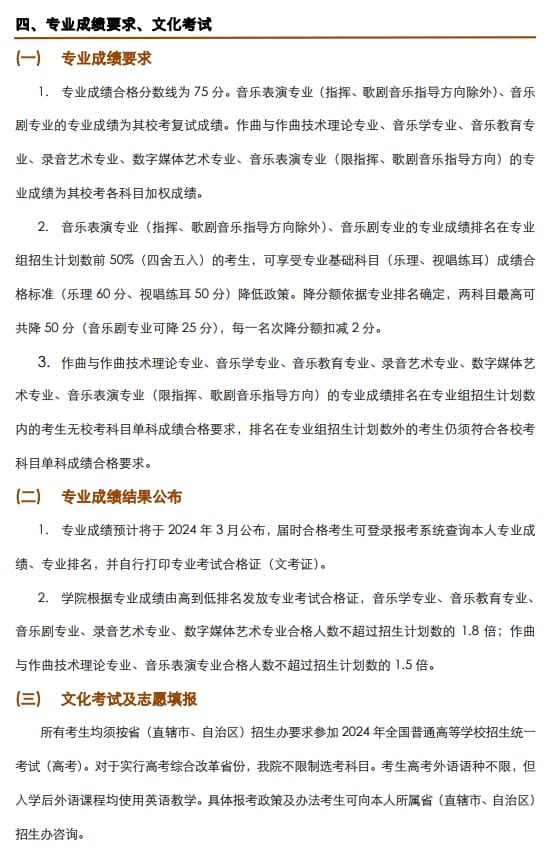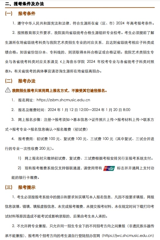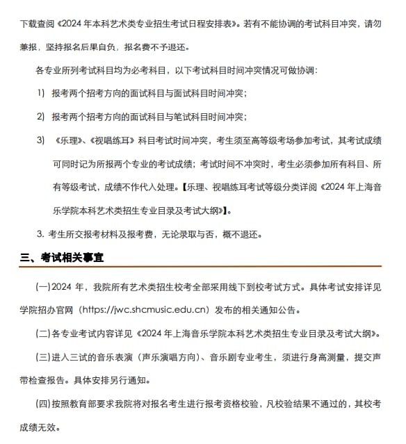 上海音乐学院2024年本科艺术类校考专业招生简章