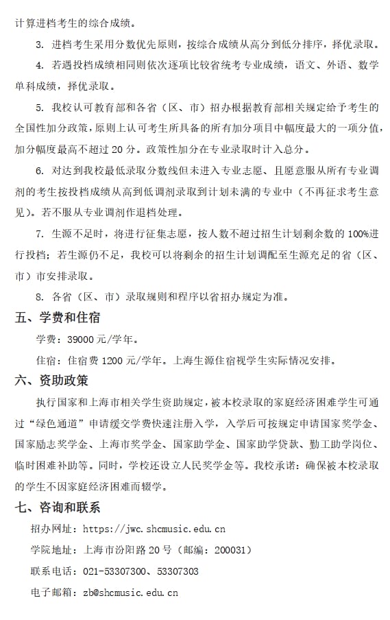 2024年上海音乐学院本科艺术类统考专业招生简章